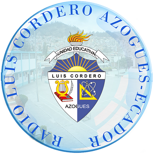 La franja divisoria con el nombre de Luis Cordero, patrono de la institución, hijo ilustre de nuestra tierra, literato, jurista, político y Presidente de la República del Ecuador.